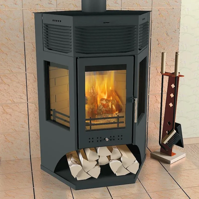 Дровяной печь-камин предназначен для отопления помещений объемом до 240 куб.м. Топочная камера выложена шамотной плиткой, в случае повреждения каждая плитка легко заменяется. Система «чистое стекло» обеспечивает защиту стекла от оседания копоти. Предусмотрена система «длительное горение» Термостойкие стекла: 400x295 - 3шт. Подключение дымохода: верхнее, заднее Большая ниша для хранения дров.