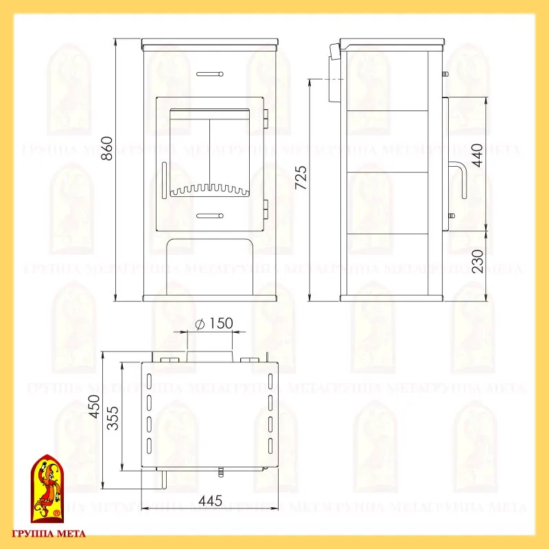 Габариты д/ш/в, мм 355/445/860