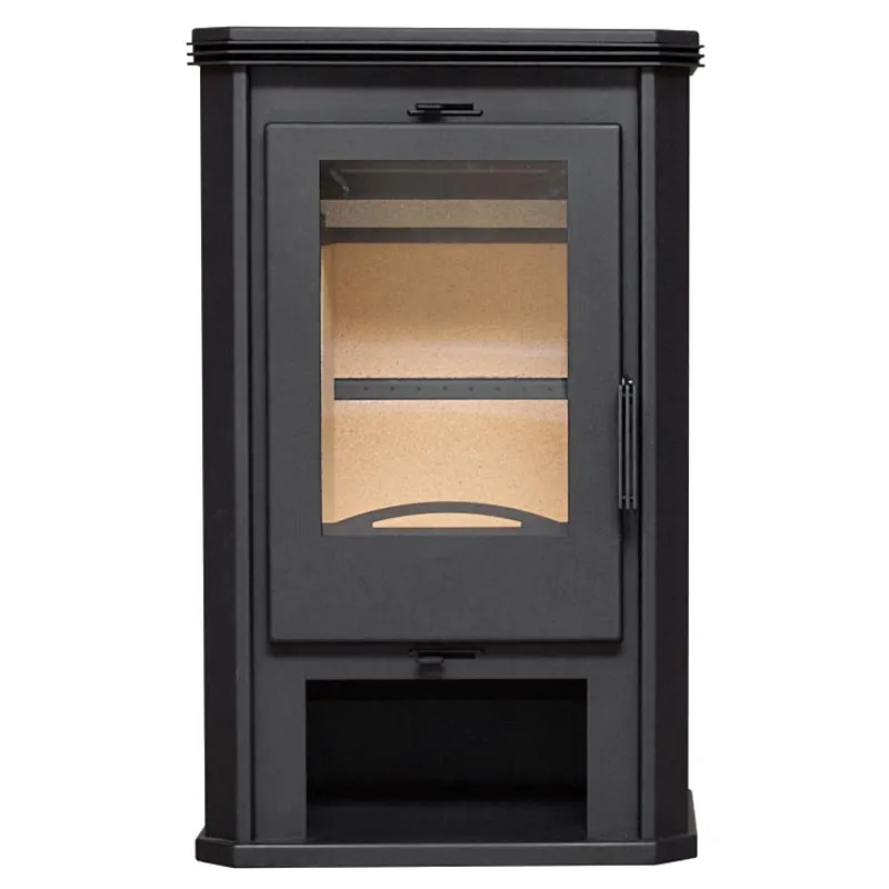Компактная пристенная печь с диаметром дымоходного патрубка 115 мм. Печь оснащена системой «регулируемого вторичного дожига». Дополнительная конвекция предусмотрена на верхней крышке печи. Идеально подходит для обогрева небольшого загородного домика площадью 30-60 м2. Размер поленьев 25 -27 см. Подсоединение к дымоходу сверху, сзади.