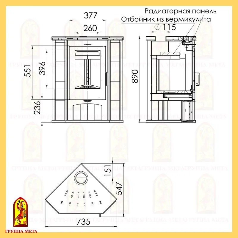 Купить Печь - камин " Одер 7 угловой " Мета г. Москва по лучшей цене с доставкой - интернет магазин №1 в России