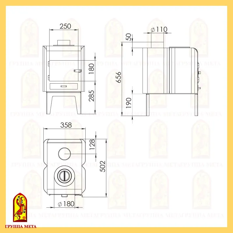 Предназначен для отопления хозяйственный и бытовых помещений до 50 кв.м. Печь оснащена конфоркой для приготовления пищи.