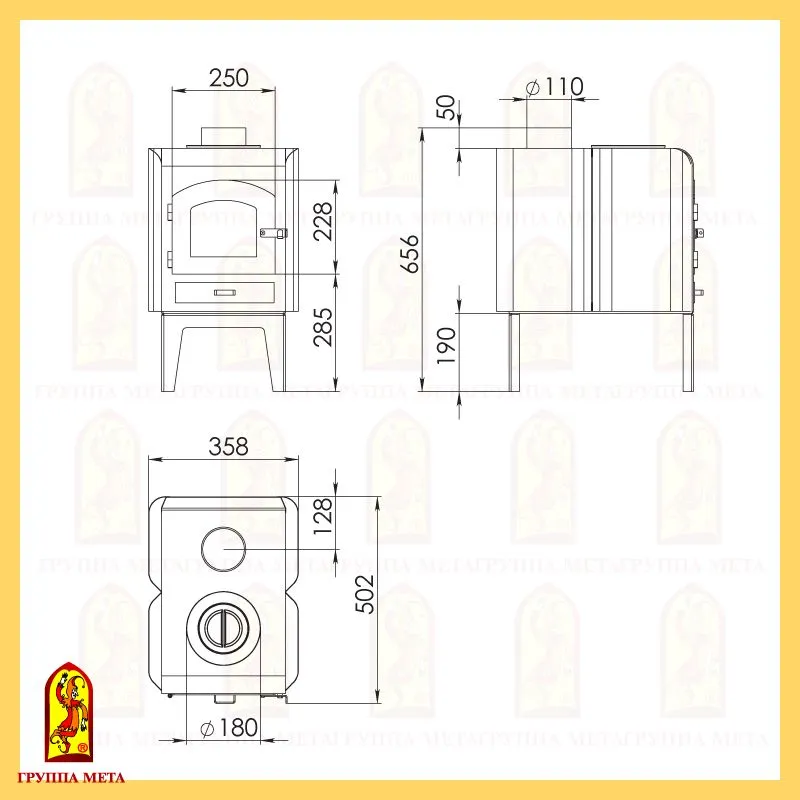 Купить Печь отопительная " ГНОМ 3 " со стеклом (распродажа) Мета г. Москва по лучшей цене с доставкой - интернет магазин №1 в России