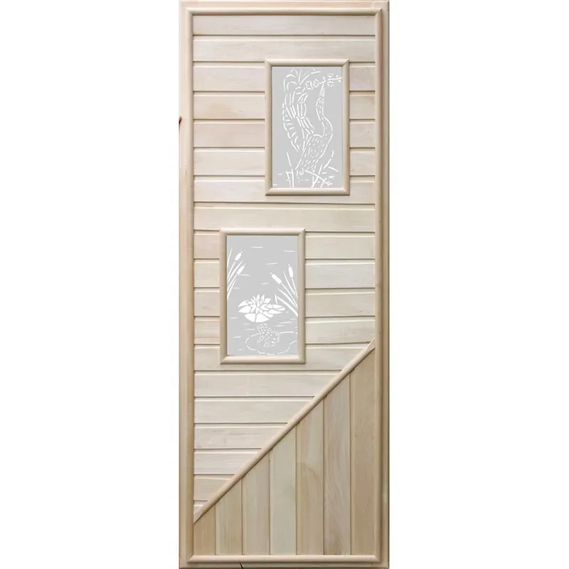 Дверь со стеклом два прямоугольника DoorWood 1850 х 700 ( липа ) б / петель и ручек