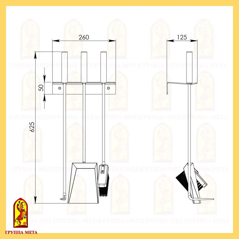 Заказать Набор для камина НКА -04ч (3 предмета, цвет черный, настенное крепление держателя, деревянные ручки) — «ВЕК»