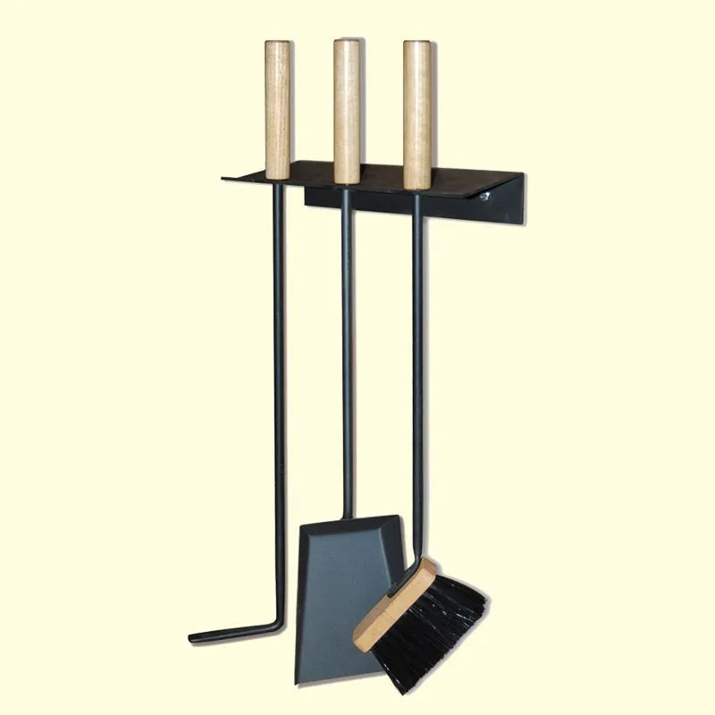 Набор для камина НКА -04ч (3 предмета, цвет черный, настенное крепление держателя, деревянные ручки)