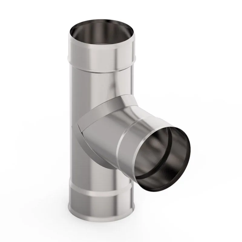 Тройник предназначен для изменения направления дымохода. Облегчает обслуживание дымового канала. Может использоваться (с заглушкой) в качестве ревизии.