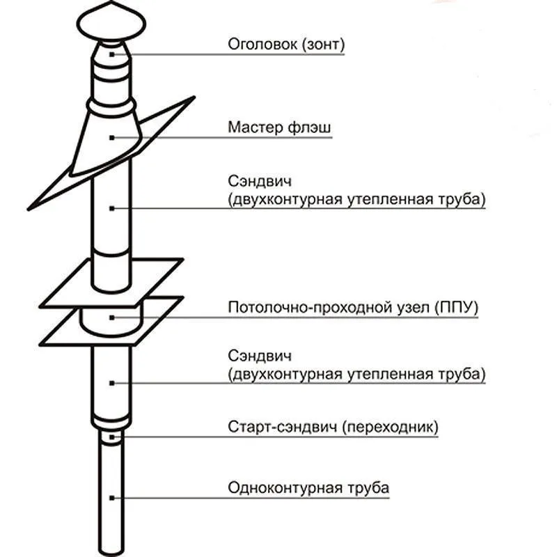 Внимание! Установка дымохода должна производиться в соответствии с действующими СНИПами и ГОСТами.