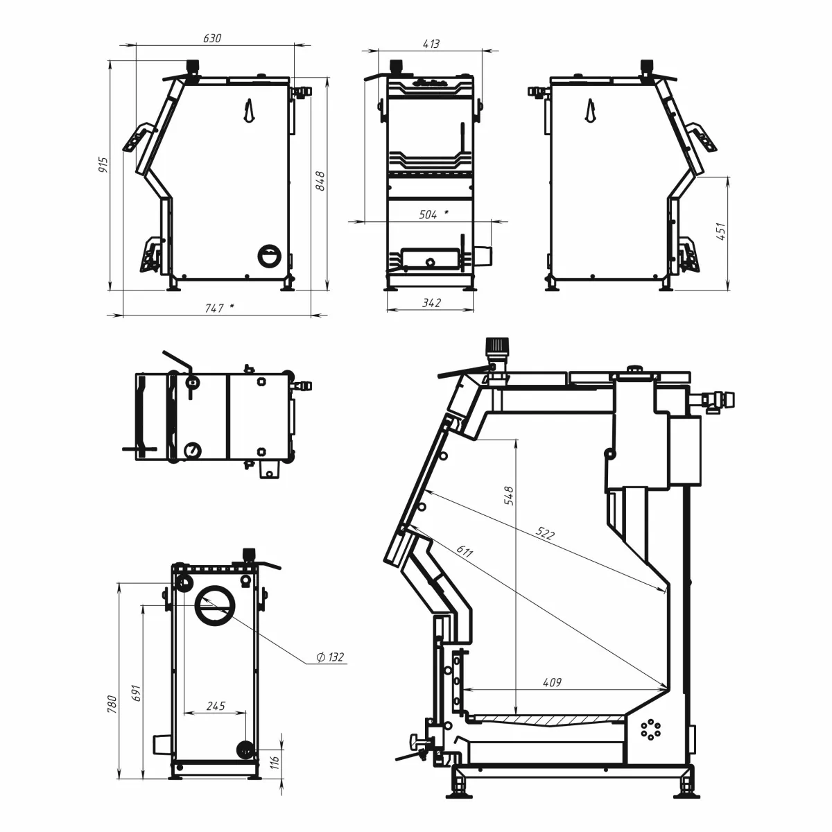 • удобный герметичный люк сверху котла для чистки и обслуживания дымовых каналов