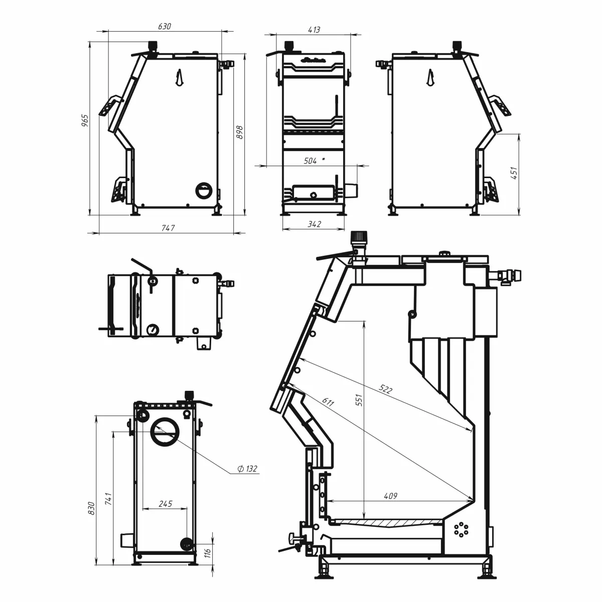 • увеличенный топочный проем и дверка с надежным и герметичным запиранием имеет специальный наклон для удобства закладки угля и самоохлаждаемую ручку