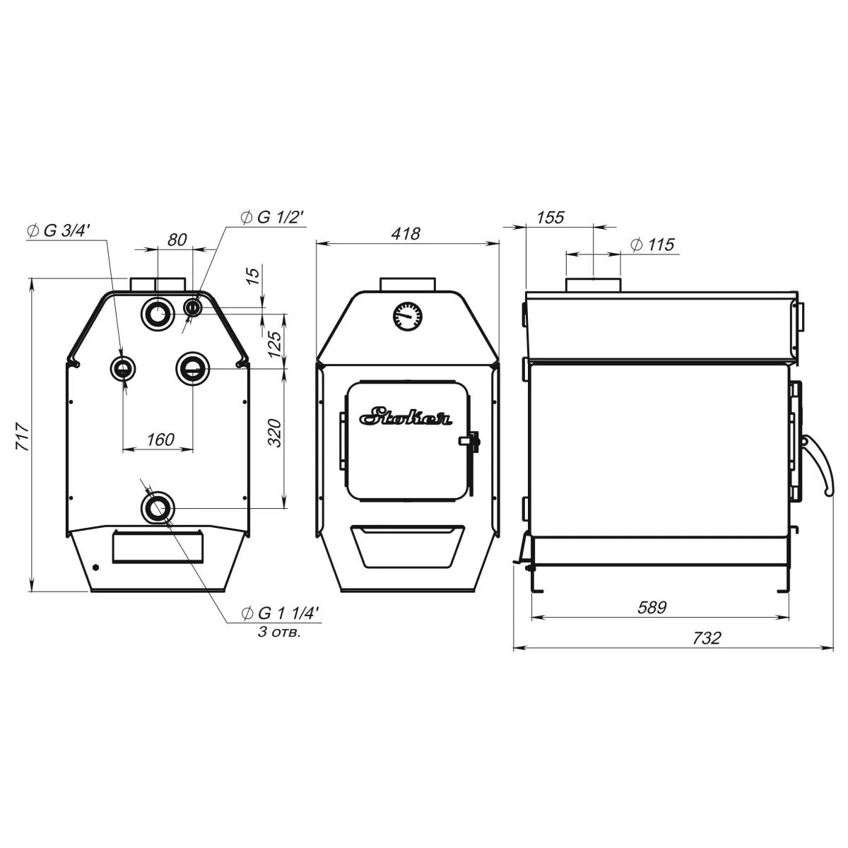 Универсальный твердотопливный отопительный аппарат с водяным контуром Stoker АОТВ 16 предназначен для отопления зданий, сооружений, помещений оборудованных системой водяного отопления с естественной и принудительной циркуляцией. В качестве топлива могут использоваться дрова, брикеты или электричество (ТЭН опционально).