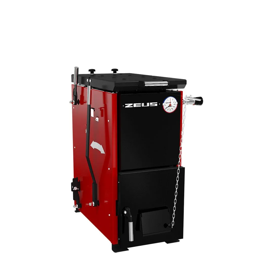Твердотопливный котел предназначен для отопления помещений до 100 кв.м. Основной вид топлива – уголь, дополнительный – дрова, электричество. Специальный механизм очистки колосников разрезает и удаляет шлак, образующийся при сгорании угля. В котле применяется высокоточный термоманометр и возможна установка регулятора горения. Предусмотрена возможность установки блока ТЭН (приобретается отдельно) Наружные поверхности котла облицованы теплоизолирующим материалом, на основе базальтового волокна и защитно-декоративными панелями, которые снижают потерю тепла теплоносителя, уменьшают инфракрасное излучение и предохраняют владельца от контакта с горячими поверхностями корпуса.