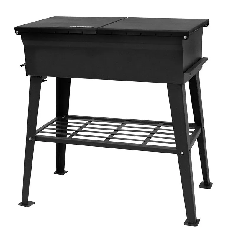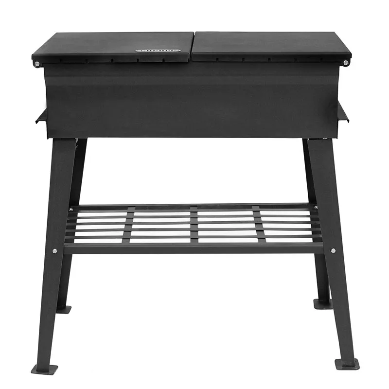 • Функциональность: Характерной отличительной особенностью данного мангала является то, что он имеет две крышки, выполняющие функцию закрытия мангальной части, а также подставок под решетку, шампуры либо посуду, необходимую при приготовлении. Это делает использование мангала очень практичным и эффективным: не нужно подбирать место под аксессуары, продукты и сопутствующие элементы барбекю.