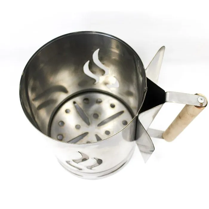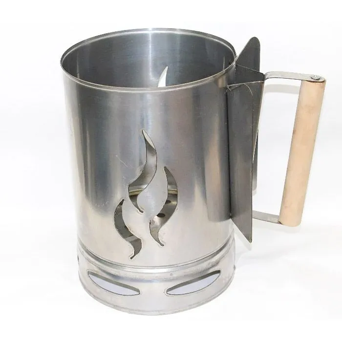 Кружка-стартер – самый простой способ сделать угли для шашлыка за 10-15 минут без использования разжигающих жидкостей. В ёмкость засыпается древесный уголь общим объемом 7,5 л. (примерно 2 кг). Диаметр стартера 200 мм. Снизу под кружку подкладывают подожженную бумагу и за счет конвекционных потоков происходит возгорание всей массы древесного угля. Подходит для всех видов мангалов.
