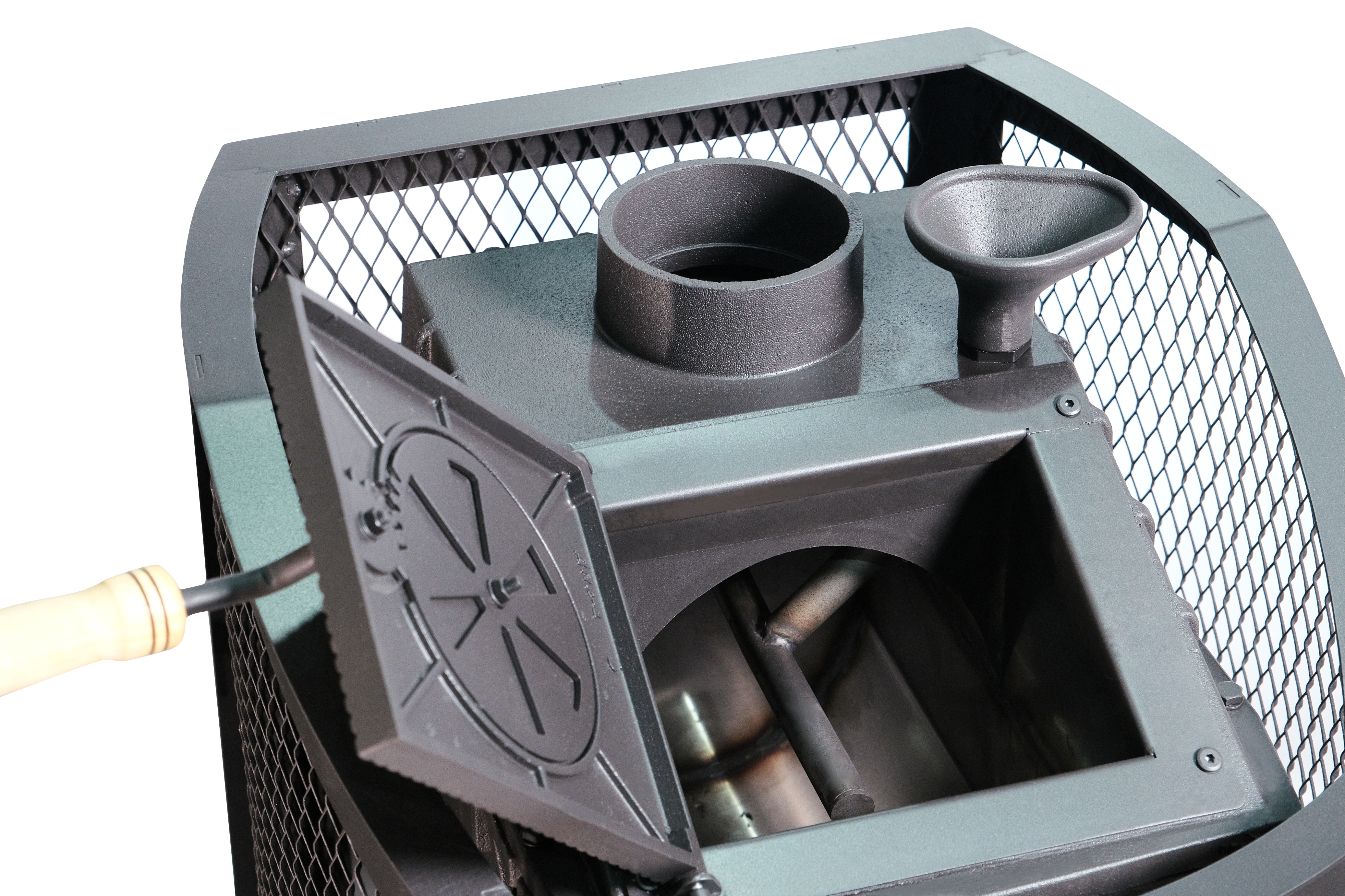 Топочная камера выполнена из прочного и долговечного литого чугуна толщиной 8-10 мм. Чугун обладает хорошей стойкостью к длительному воздействию высоких температур, а за счет высокой теплоемкости хорошо принимает и отдает тепло.