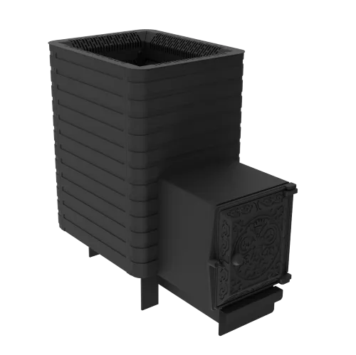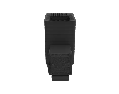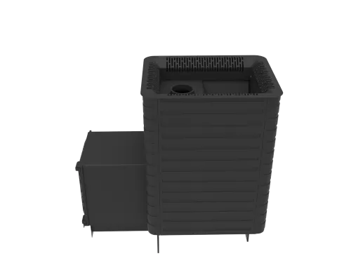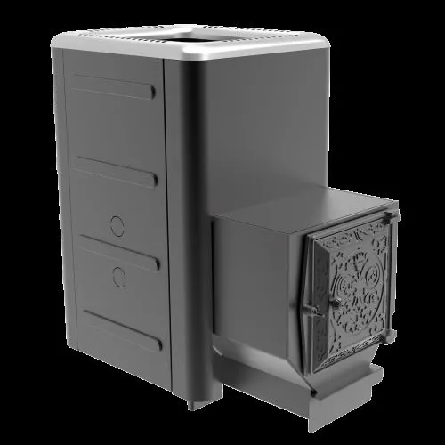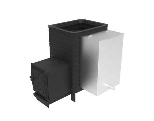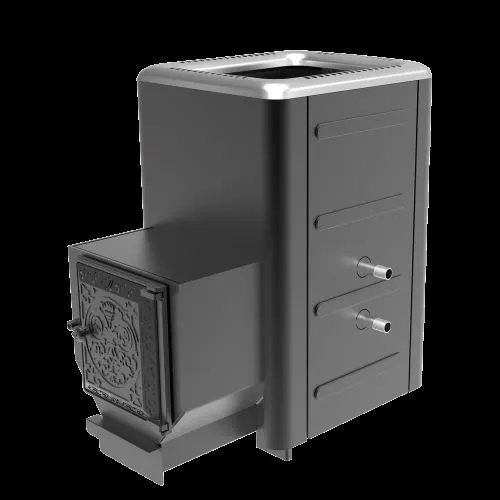 В данной модели полностью изменён внешний кожух печи. Добавлена универсальная функция установки навесного бака на 35 литров или теплообменника. Теплообменник или бак можно установить по желанию покупателя с правой или с левой стороны.