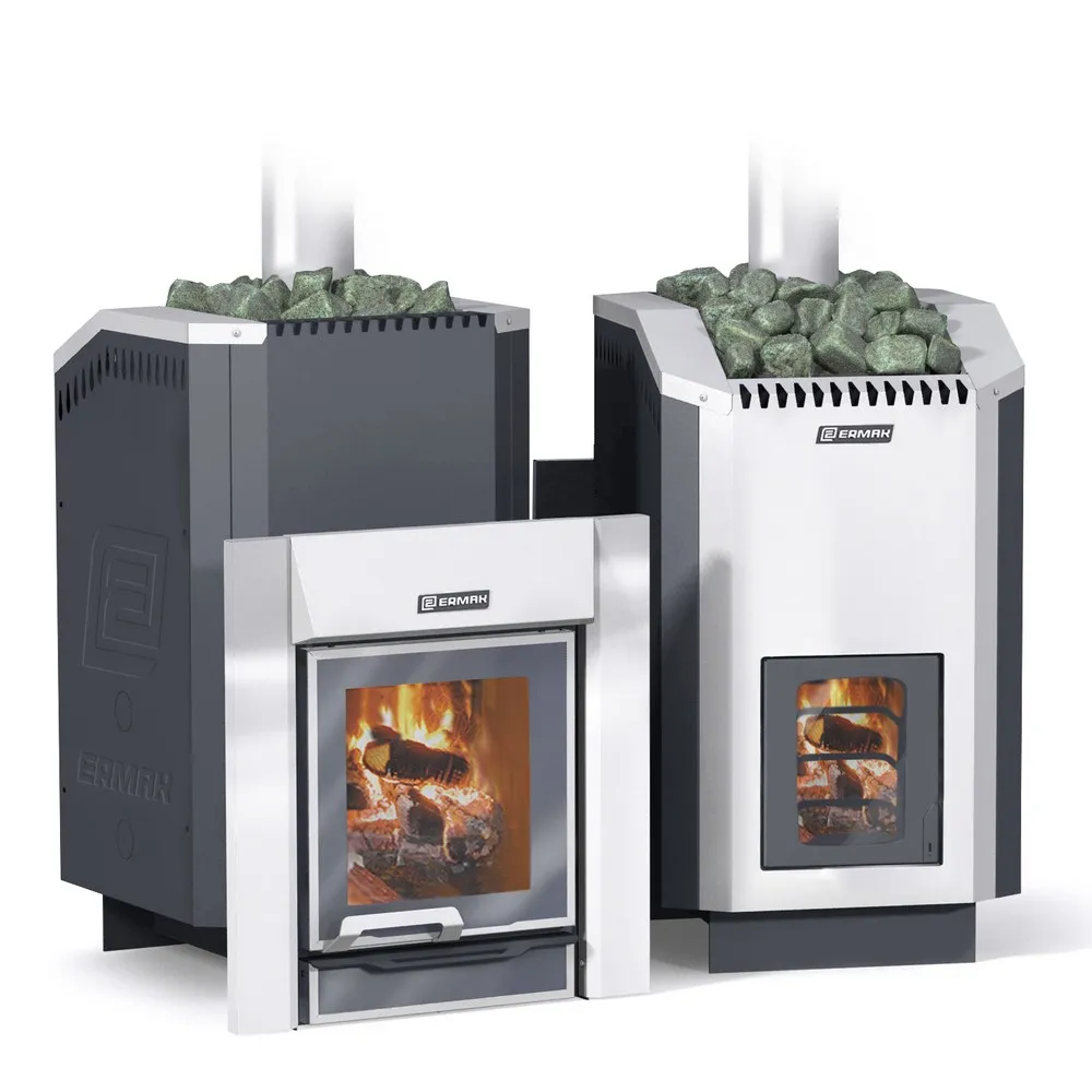 ERMAK 24 Люкс (нержавеющая сталь) - это уникальная модульная банная печь, основные элементы топки и дымовых каналов которой выполнены из настоящей пищевой термостойкой нержавейки INOX AISI-304. Закрытая каменка и парообразователь помогают получать настоящий сухой перегретый мелкодисперсный пар, который создает мягкую и комфортную атмосферу в парной.