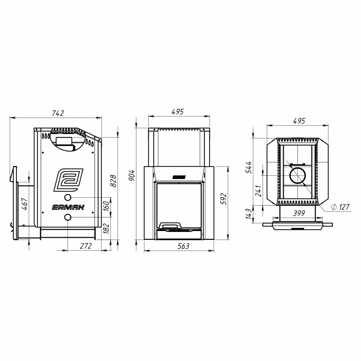 • Центральное расположение дымохода (Ø 130 мм)