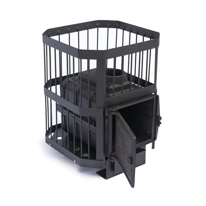 Уникальные свойства чугуна позволяют эксплуатировать печь с высокой интенсивностью. Она подходит для использования в общественных банях и саунах. Топливом служат дрова и бурый уголь. Срок службы более 10-ти лет.