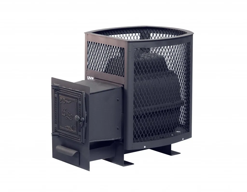 Уникальные свойства чугуна позволяют эксплуатировать печь с высокой интенсивностью. Она подходит для использования в общественных банях и саунах. Топливом служат дрова и бурый уголь. Срок службы более 10-ти лет.