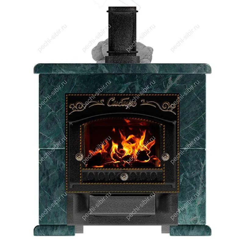 Облицовка из природного полностью останавливает вредное ИК-излучение от разогретой печи и дымохода, отдавая здоровое тепло.
