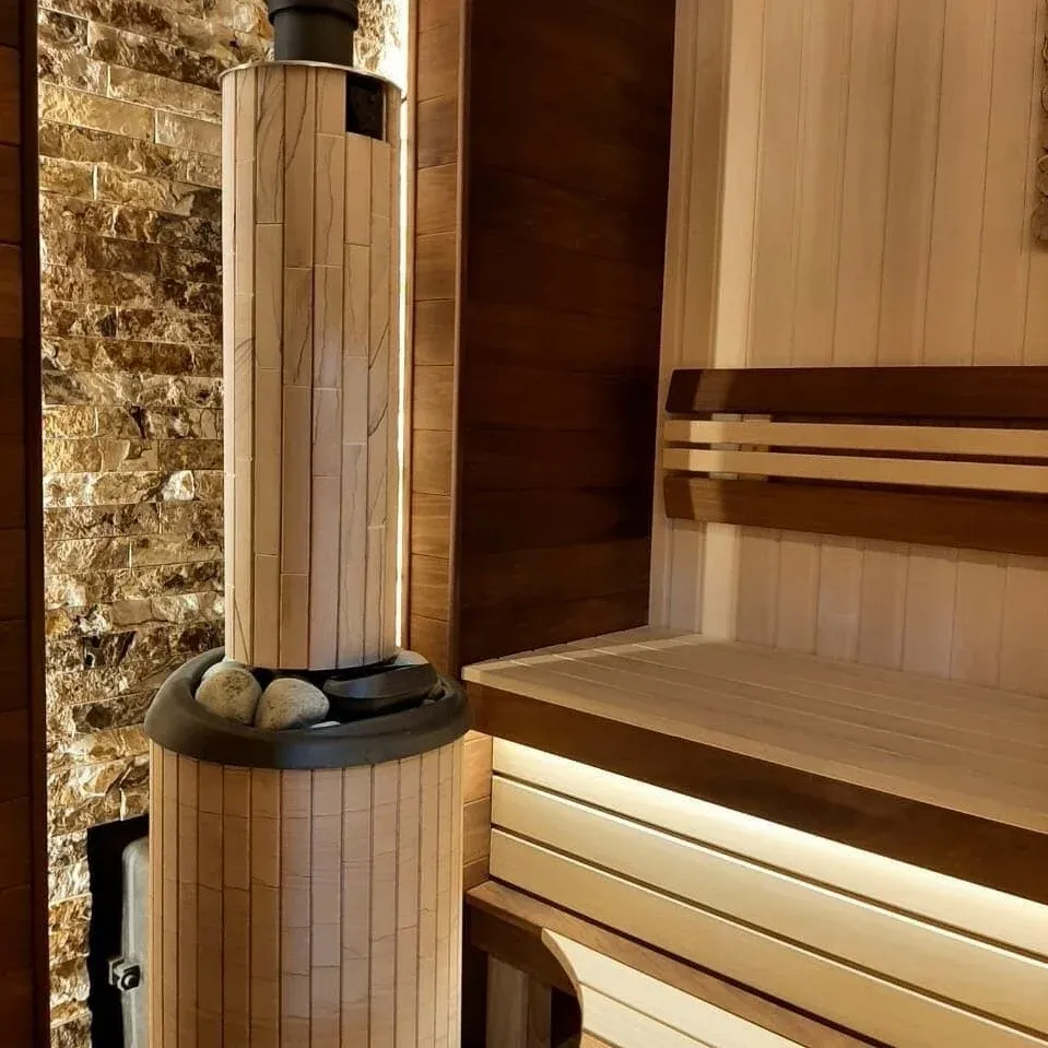 Купить Печь банная "Атмосфера L" в ламелях "Окаменевшее дерево" наборный рисунок ПроМетал ПроМеталл г. Воронеж по лучшей цене с доставкой - интернет магазин №1 в России