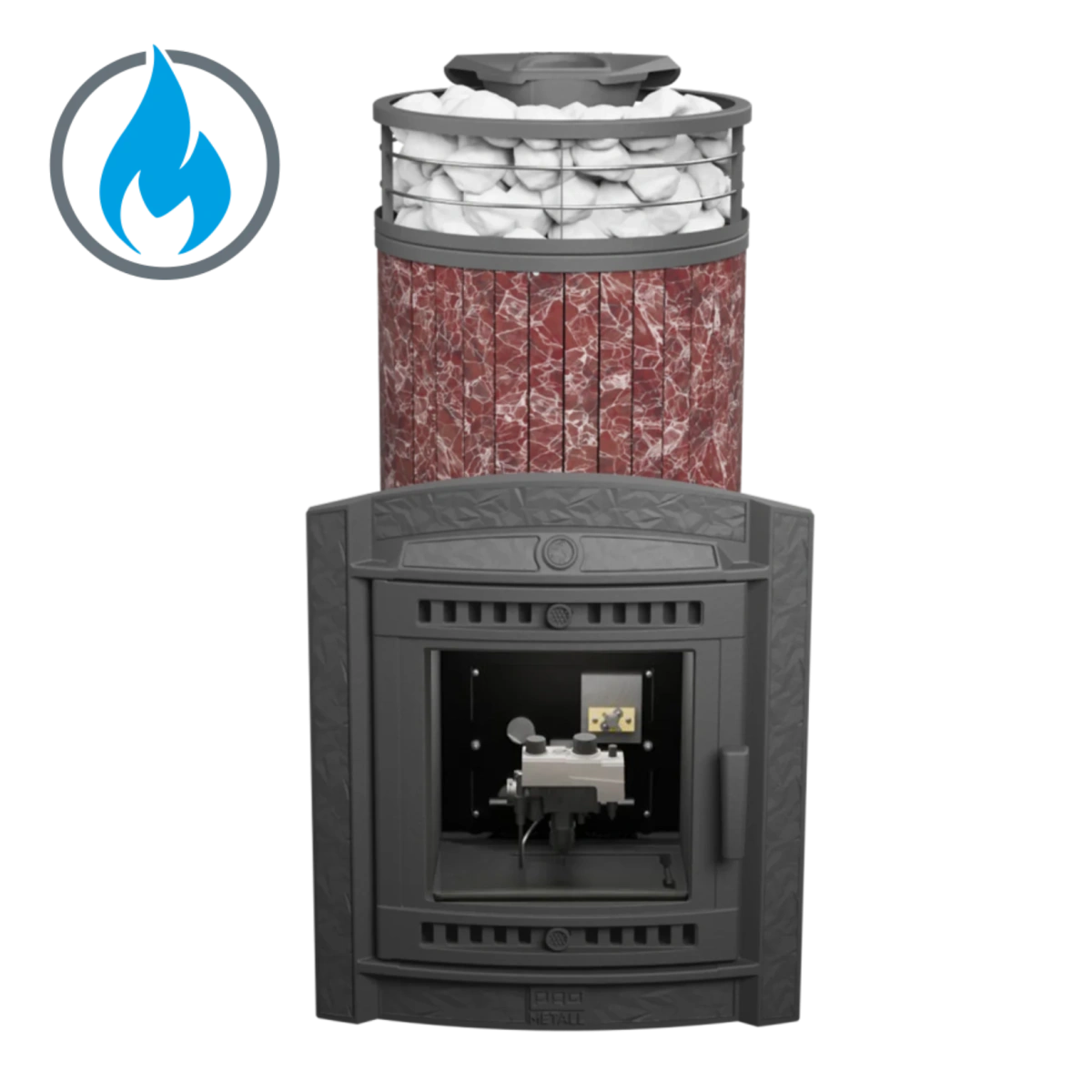Печь банная "Атмосфера XL" Россо Леванто ламель+сетка с газовой горелкой ПроМеталл