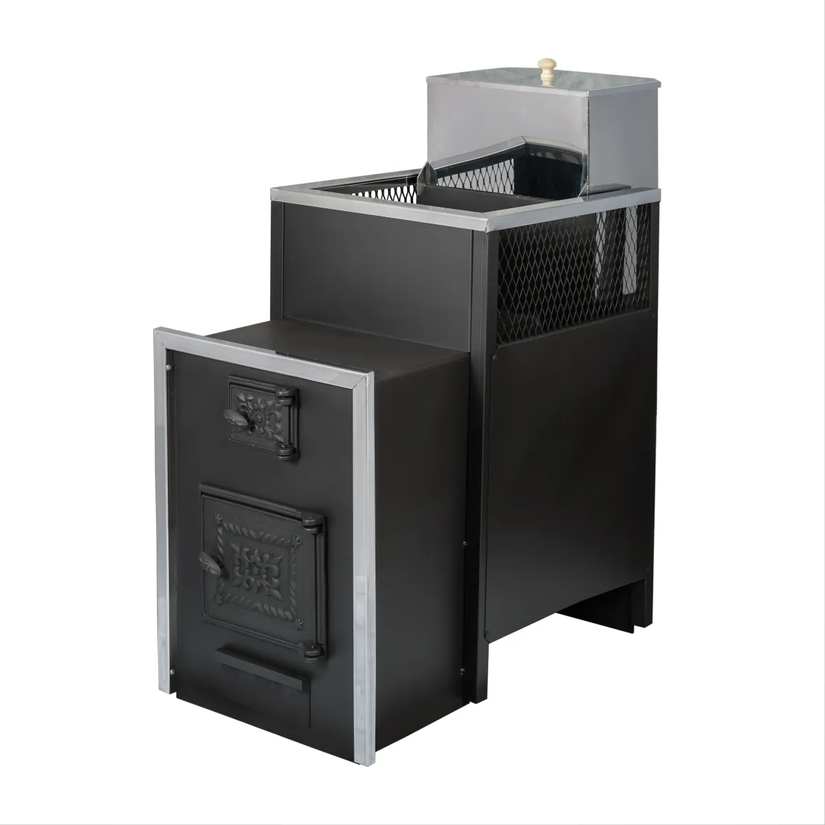 Особенность данной печи — бак для нагрева воды устанавливается сверху на часть топки, сзади.