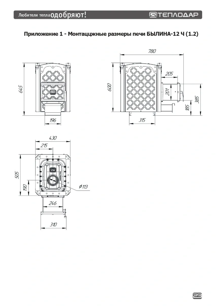 Былина имеет вместительную топку с теплосъёмными ребрами по всей поверхности, что позволяет эффективней и быстрей прогреть помещение.