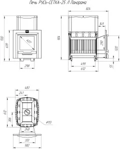 Печь для бани из нерж.сталь РУСЬ-СЕТКА-25 Л Панорама Теплодар