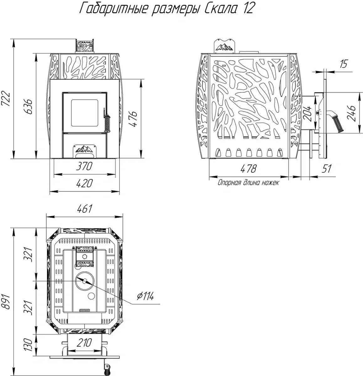 Печь рассчитана на дрова длиной до 360 мм — это практичный размер, который позволяет топить без лишней подготовки и подрезки поленьев. Удобно для повседневного использования и быстрых протопок.