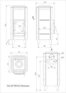 Печь-камин с плитой ВЕРТИКАЛЬ Металлика Теплодар