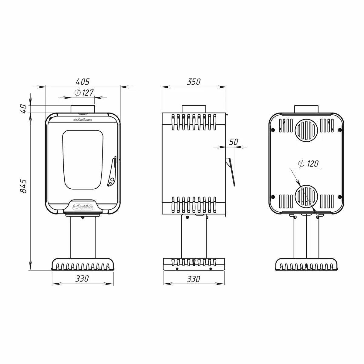 • Присоединительный диаметр дымохода - 130 мм
