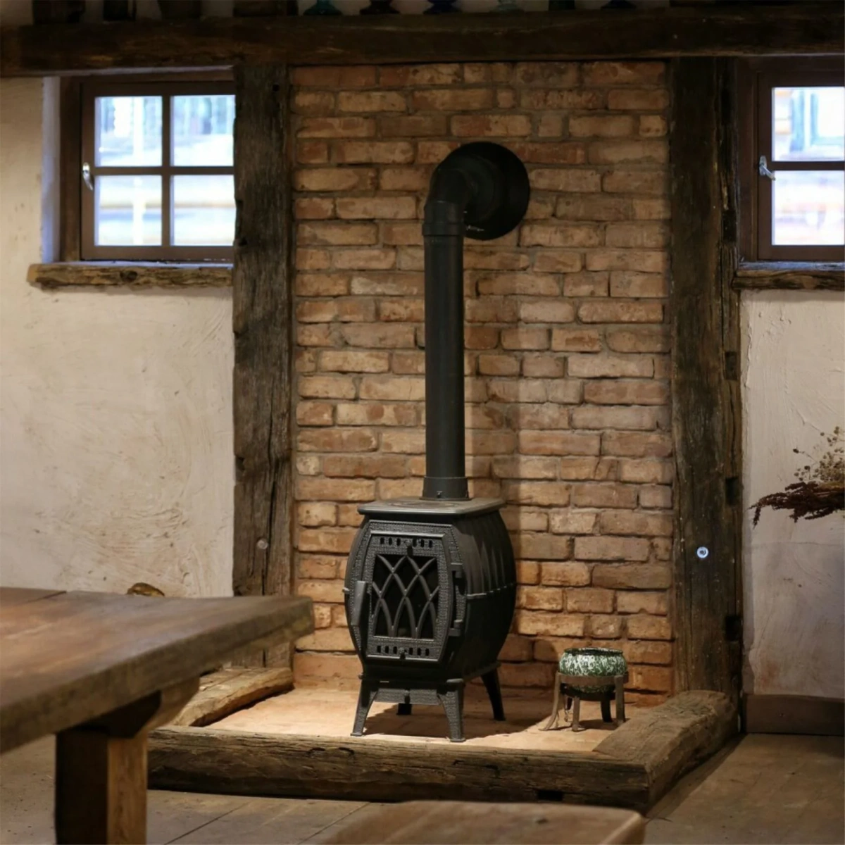 Многофункциональная модель, сочетающая в себе достоинства печи и камина: быстрый нагрев помещения, высокая теплоотдача, небольшой расход дров, долгий режим в работе тления и варочная панель в комплекте.