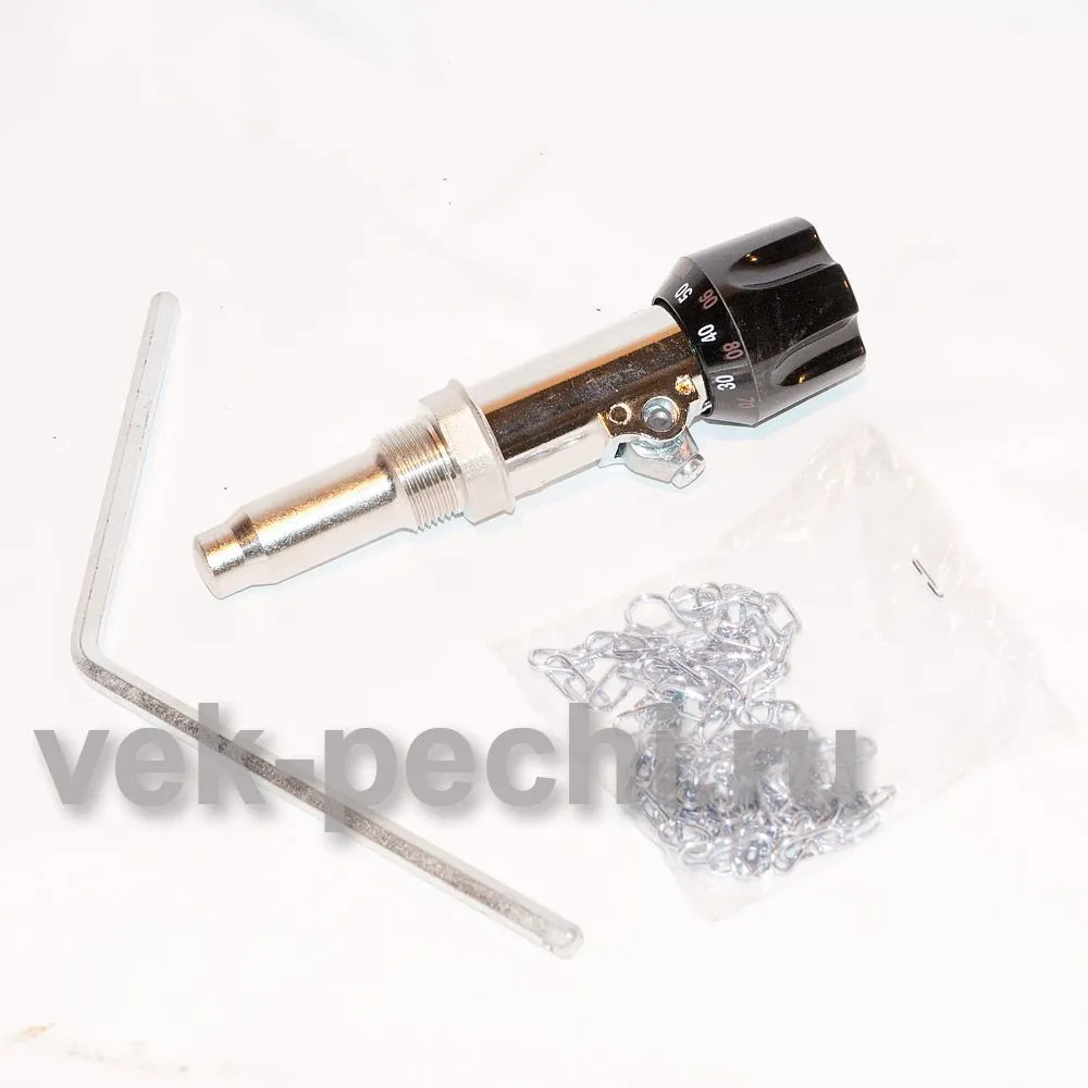 Регулятор тяги для котла. Управляет силой горения. Состоит из термостатического элемента и рычага с цепочкой. Устанавливается в корпус котла и на дверцу зольника. Термостатический элемент контактирует с теплоносителем. При нагреве жидкость в термостатическом приводе расширяется и рычаг с цепочкой прикрывает дверцу зольника, уменьшая доступ воздуха. Процесс горения замедляется. При остывании жидкости дверца таким же способ приоткрывается. Работает без участия человека.