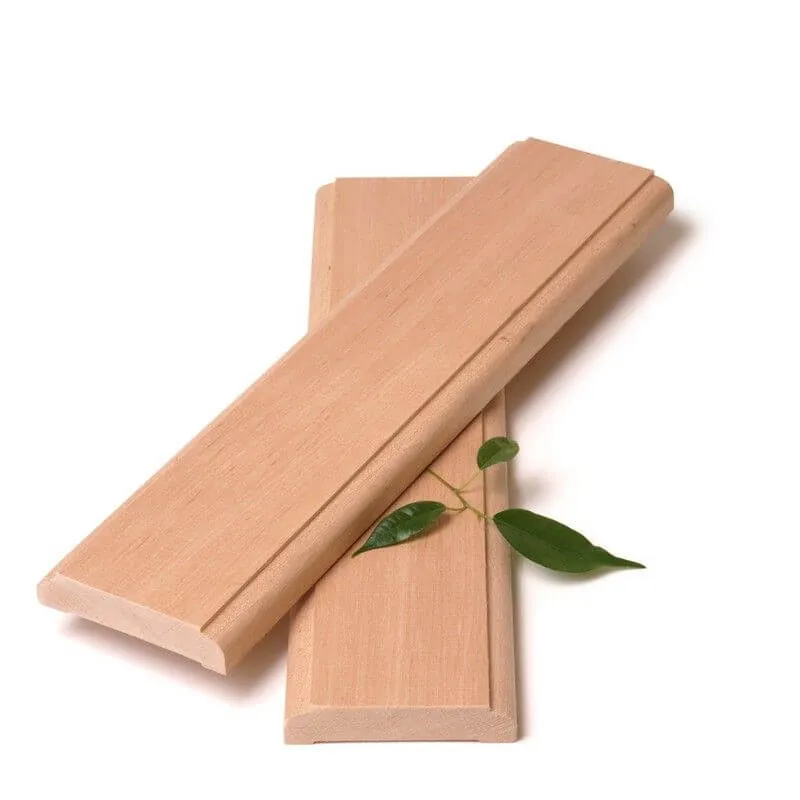 Применяется для облагораживания проема двери. Закрываетщель между проемом и деревянной коробкой со стороны парилки и предбанника.