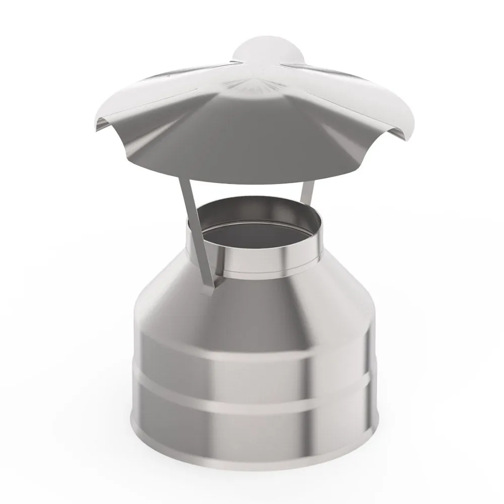 Оголовок является завершающим элементом дымохода. Используется для предохранения двустенного дымохода от атмосферных осадков, а также закрывает слой теплоизоляции.