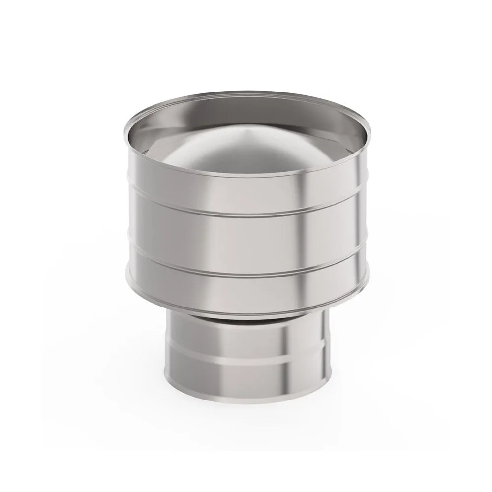 Оголовок с дефлектором является завершающим элементом дымохода. Используется для предохранения двустенного дымохода от атмосферных осадков, а также закрывает слой теплоизоляции. Помимо этого снижает воздействие ветра.
