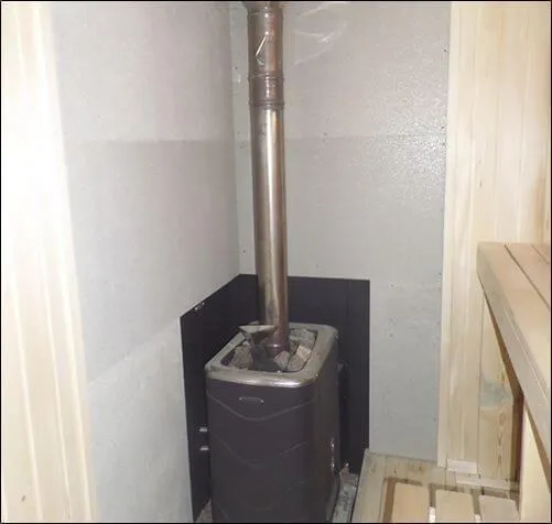 Фиброцементная плита ФЛАММА применяется для экранирования печей для бани, отопительных печей и котлов, каминов, для защиты стены вдоль дымохода.