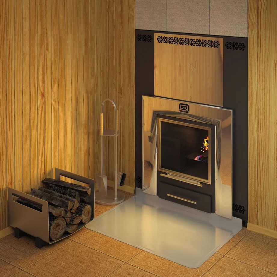 Материалы: экраны изготавливаются из качественной конструкционной стали марки 08пс, толщиной 0,8мм. Окрашиваются жаростойкой кремнийорганической эмалью, сохраняющей свойства при температуре до 600°C. Фронтальный и боковой экраны имеют декоративное обрамление из нержавеющей стали AISI 430.