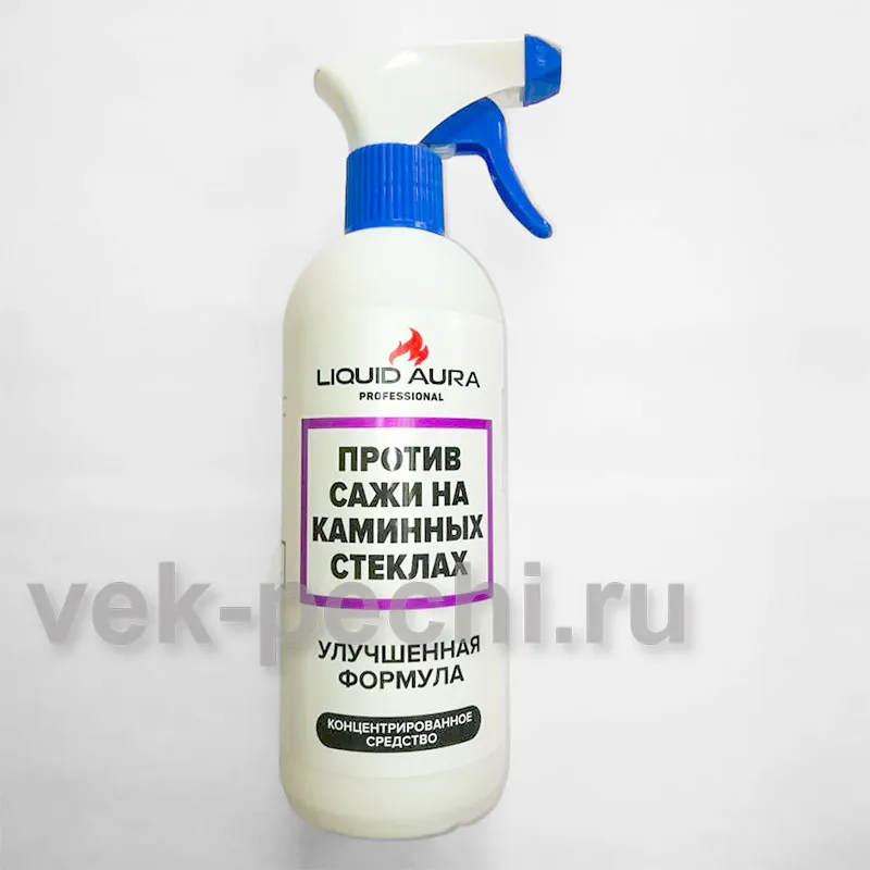 Профессиональное средство для очистки каминных стекол. Жидкость на основе усиленных щелочных композитов и органических моющих присадок.