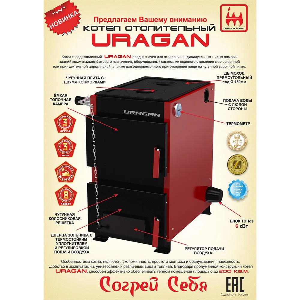 Твердотопливный котёл c варочной плитой для отопления помещений площадью до 160 кв.м.