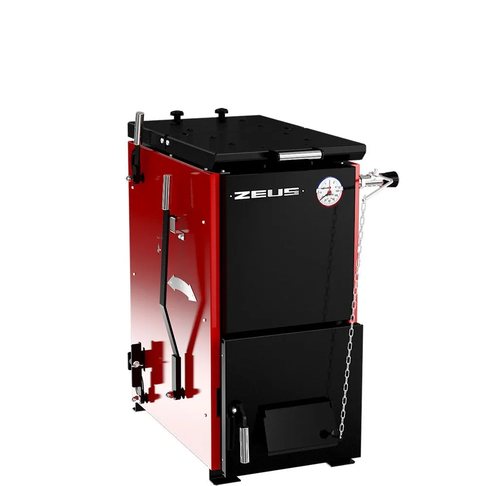 Твердотопливный котел предназначен для отопления помещений до 120 кв.м. Основной вид топлива – уголь, дополнительный – дрова, электричество. Специальный механизм очистки колосников разрезает и удаляет шлак, образующийся при сгорании угля. В котле применяется высокоточный термоманометр и возможна установка регулятора горения. Предусмотрена возможность установки блока ТЭН (приобретается отдельно) Наружные поверхности котла облицованы теплоизолирующим материалом, на основе базальтового волокна и защитно-декоративными панелями, которые снижают потерю тепла теплоносителя, уменьшают инфракрасное излучение и предохраняют владельца от контакта с горячими поверхностями корпуса.