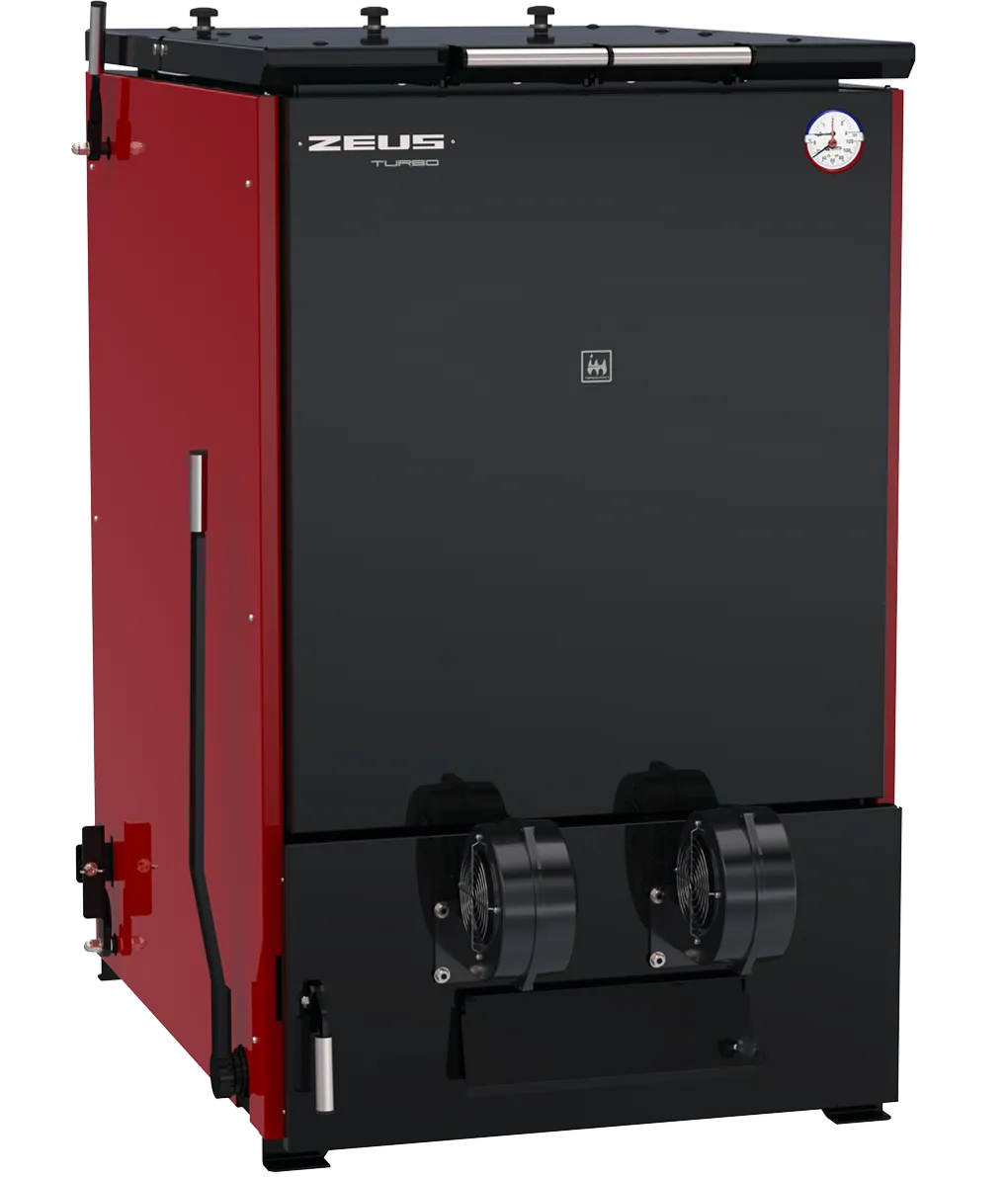 Стальные полуавтоматические котлы «ZEUS-TURBO» длительного горения оборудованы вентилятором наддува с интеллектуальным блоком управления автоматической работы системы наддува воздуха. Это позволяет подавать необходимое количество воздуха в камеру сгорания для максимально эффективной работы котла.