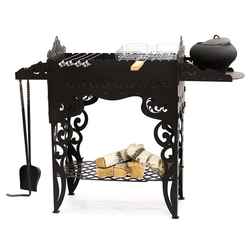 Настоящее буйство фантазии, эстетики, гармоничных линий в совокупности с надежностью и практичностью. Шашлык из любого вида мяса, овощи-гриль, рыба и морепродукты - все это возможно приготовить на живом огне в мангале "Сибирь-винтаж".
