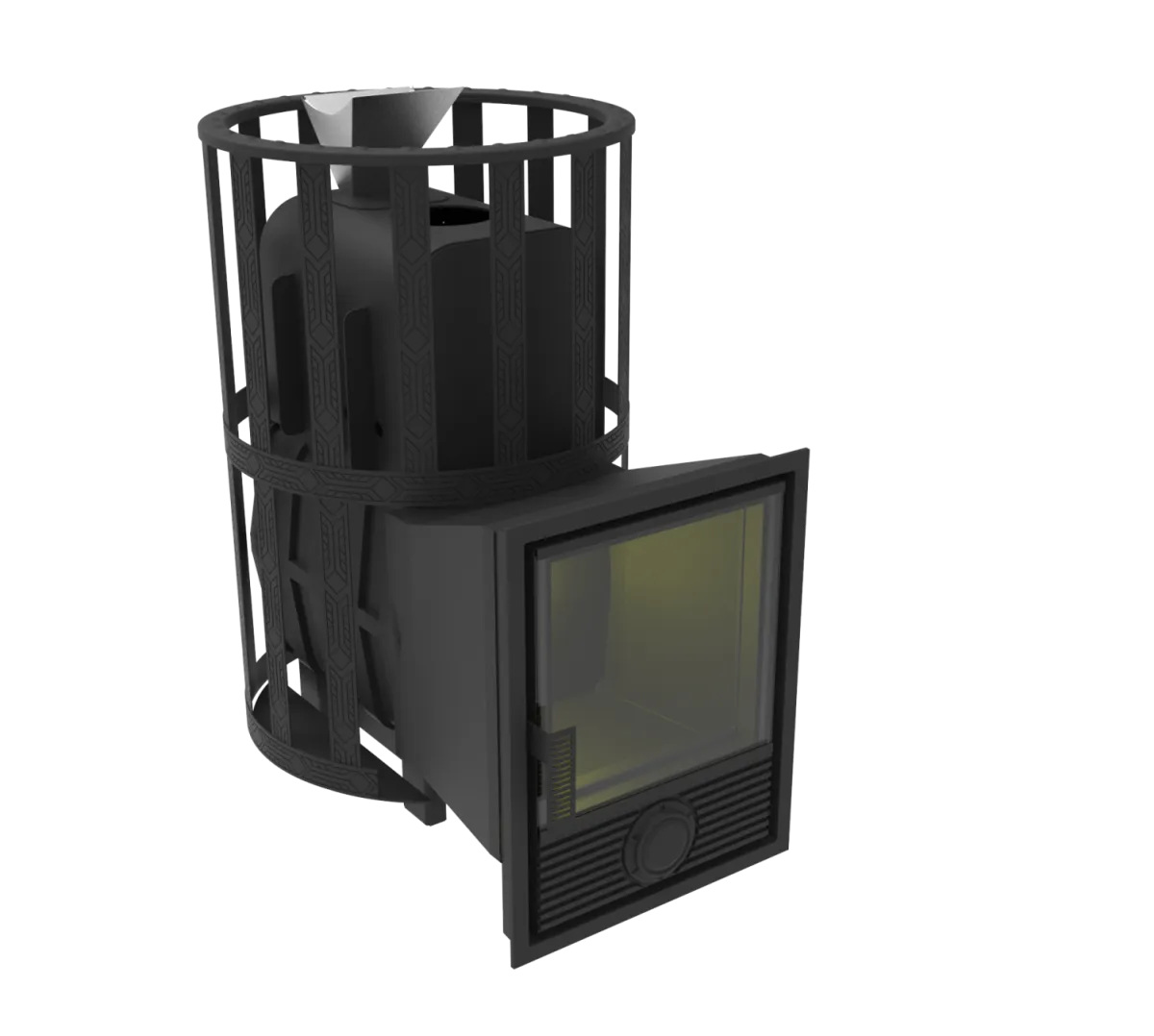 Заказать Печь банная чугунная " Воевода " 15 Д - 1 со стеклом 320х320, сетка, ЗАКРЫТАЯ КАМЕНКА — «ВЕК»