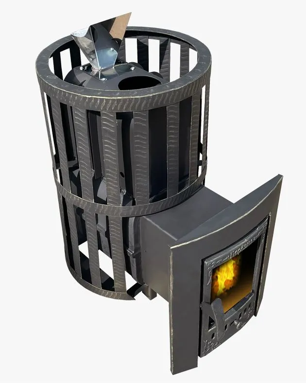 Печь банная чугунная " Воевода " 15 со СТЕКЛОМ, сетка ЗАКРЫТАЯ КАМЕНКА, под остаток