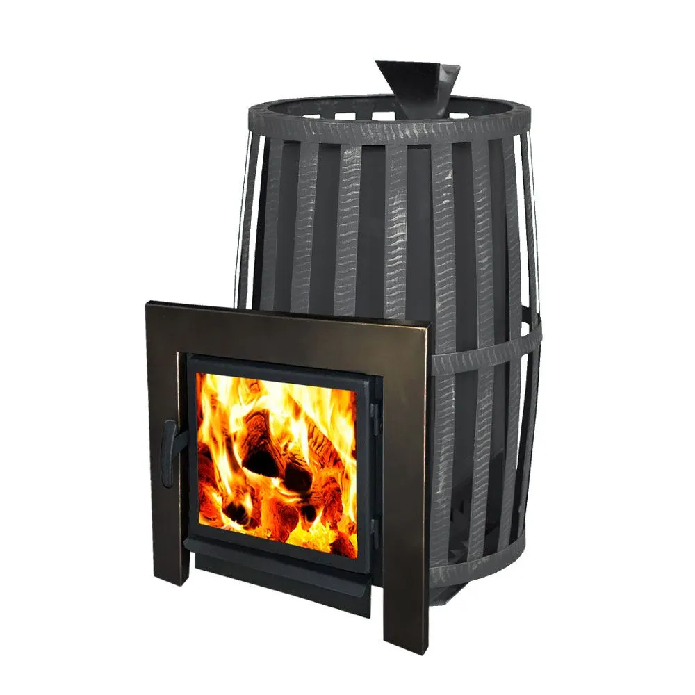 Дверца с большим жаропрочным стеклом. Размер каминной дверки: 340х460 мм, диагональ стекла 460 мм.