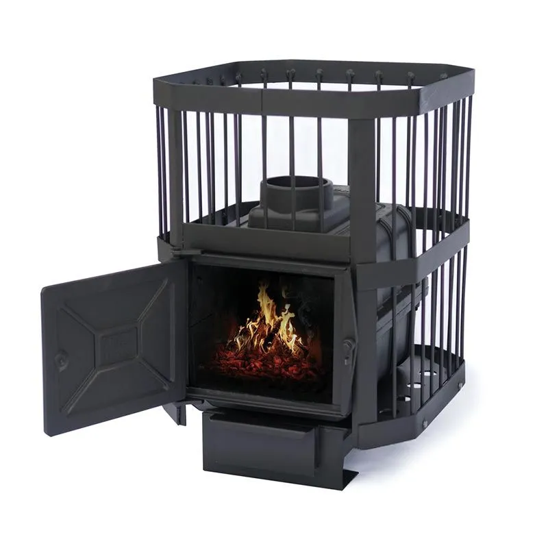 Уникальные свойства чугуна позволяют эксплуатировать печь с высокой интенсивностью. Она подходит для использования в общественных банях и саунах. Топливом служат дрова и бурый уголь. Срок службы более 10-ти лет.