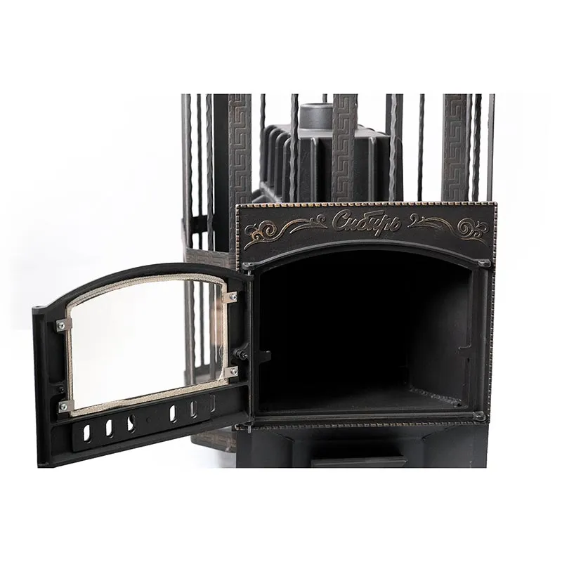 Дверца отлита из чугуна, снабжена надписью «Сибирь», удобна в использовании — ее можно установить как для правого, так и для левого открывания.