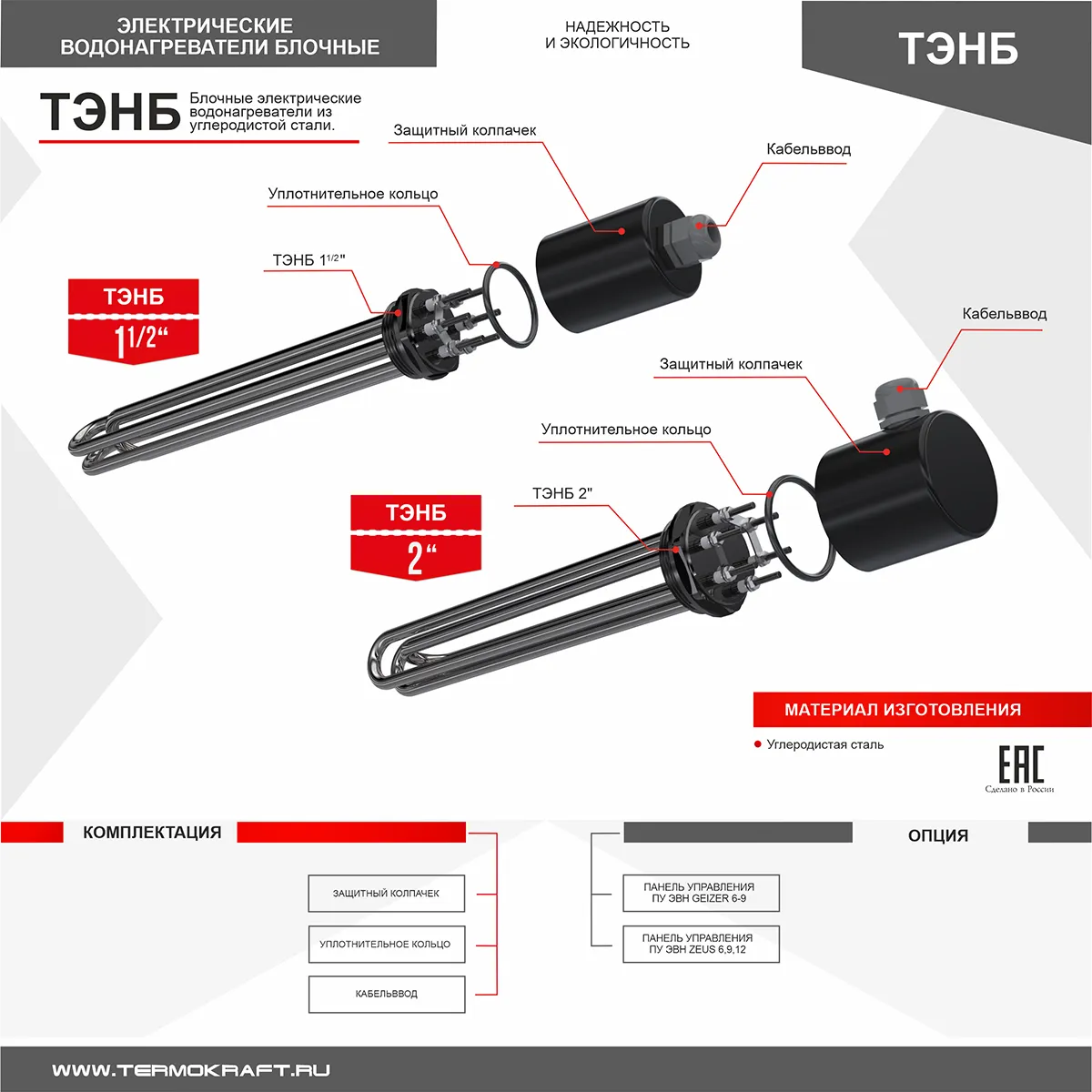 В состав TЭHБ - 12 кВт входит 3 ТЭНа по 4 кВт, что позволяет увеличивать мощность ступенчато. Благодаря чему есть возможность экономить электричество.